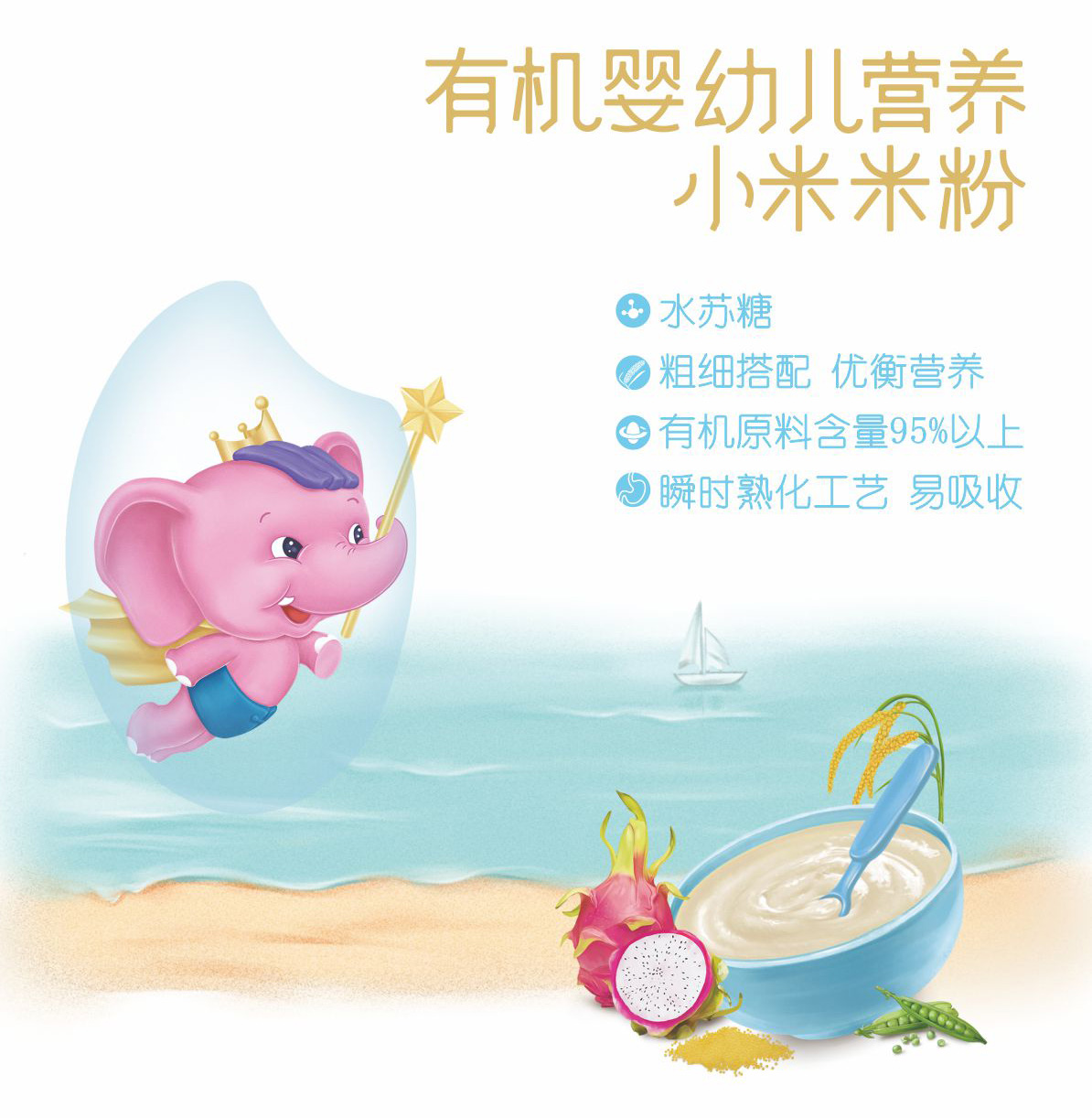 华氏宝贝有机幼儿营养小米米粉根据宝宝肠胃生理特点,精选有机营养食材,粗细搭配,配方科学。采用湿法工艺保留原料中的营养成分,更好的保护米粉营养,有利于宝宝吸收,不易上火。全程有机透明追溯,零污染生产环境,严苛的品质检测,给宝宝自然的爱,让妈妈爱得更安心!