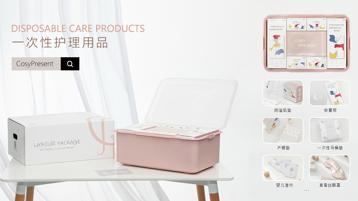 Cosy Present 品牌旗下涵盖了专业待产包,母婴出行包,婴童用品,出行护理用品,家庭护理用品,女性护理等多个系列,并集产品开发/产品生产/市场开发和销售为一体。通过严格的SGS检测,达到行业的高标准。