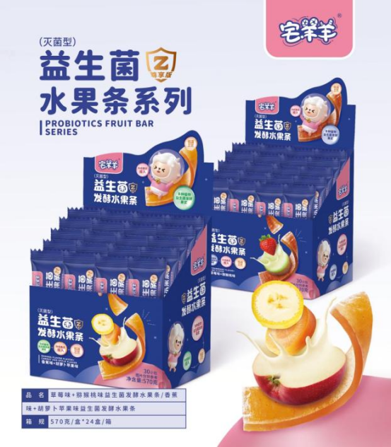 宅羊羊益生菌水果条精选优质鲜果投入,运用精湛工艺保留果蔬中营养,低热量,是真正的纯果蔬零食,特别添加益生菌,均衡肠道菌群。不含香精色素,天然原汁原味、嫩糯细腻、不粘牙不糊口、纯滑柔韧、风味独特,久吃不甜腻,保留果蔬风味,呵护成长!不同规格,给宝妈更好选择。