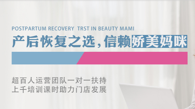 娇美妈咪,值得信赖的产后恢复品牌,是目前国内注重品牌核心竞争力塑造,专注产品体系架构,着重服务与创新的产后恢复品牌。为夯实自身实力、打造差异化优势,总部先后对希腊、英国、瑞士、日韩等多个国家和地区进行调研,将国际先进的产后恢复理念、产品制造工艺和门店运营模式叠加,先后创立12大产后恢复体系、4+1服务理念、6步严谨服务流程,构建系统科学、多元联动的平台版块,贯彻“亦医·亦美·亦家”的品牌文化。