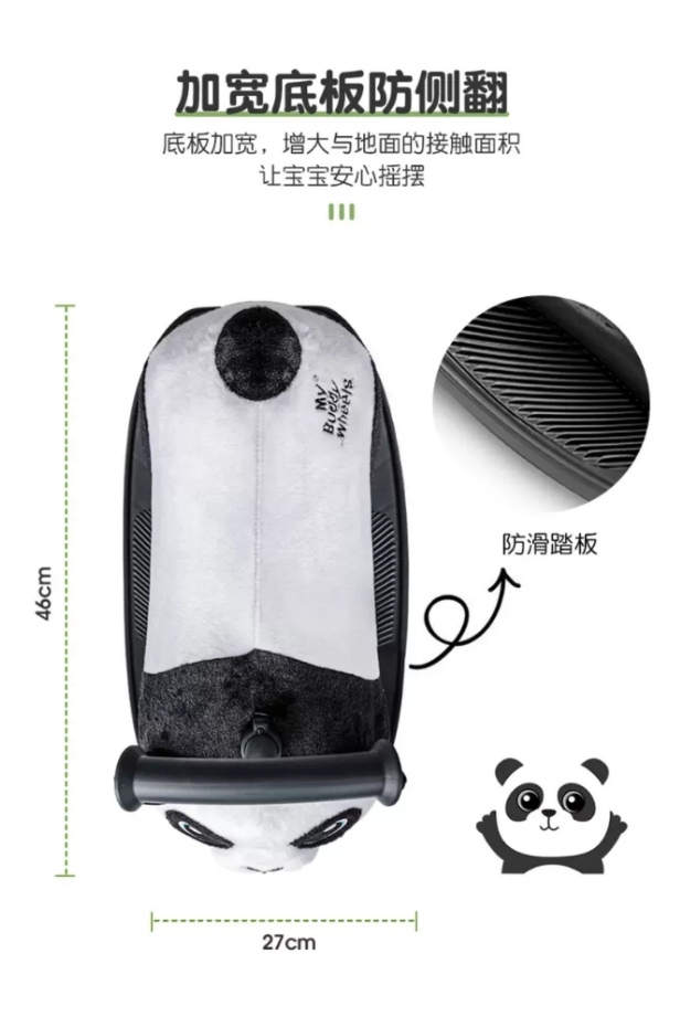 这一款熊猫摇摇车同时兼顾了摇摇车和滑步车,两种模式转换一步到位;作为摇摇车的时候,特别采用20度的倾斜结构,舒适防滑把手,防滑踏板,边缘防倾倒设计,贴心防护。而当它转变为滑步车后,又有360°静音万向轮,居家静谧陪伴,宝宝自己也能玩儿的开心!