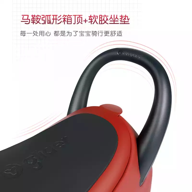 马鞍弧形箱顶加上软胶坐垫,带给宝宝的骑行更舒适的体验~