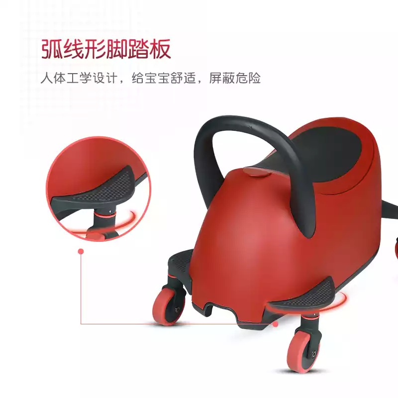 360度任意转向的万向轮,以及根据人体工学设计的弧线形脚踏板,让宝爸宝妈们安心、省心得看着宝宝玩耍!