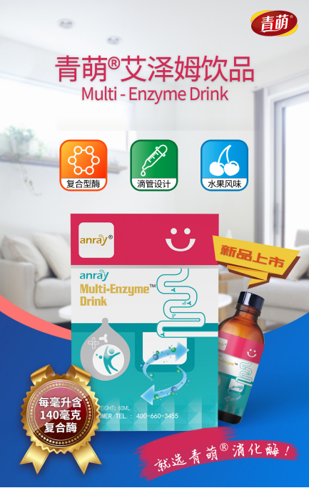 比如新上市的青萌®艾泽姆饮品,满足消费者对于营养与美味的双重需求。精选ɑ-淀粉酶、脂肪酶、菠萝蛋白酶、蛋白酶、木瓜蛋白酶5种消化酶,每毫升含复合酶140毫克,含量高;同时还有磷脂、植酸酶、低聚半乳糖,稳定性强,水果口感,维持肠道菌群平衡,打造肠道营养健康新标杆。