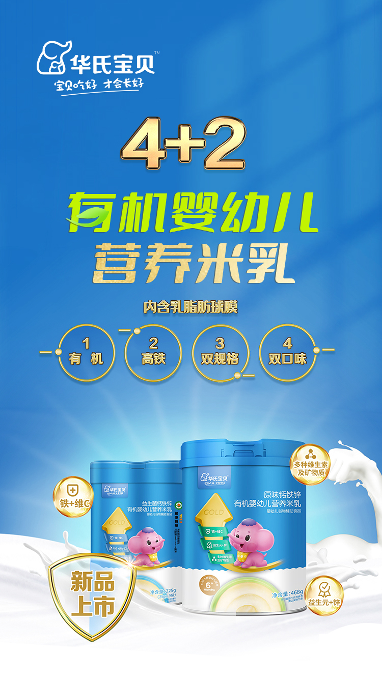 华氏宝贝紧跟时代潮流,积极拥抱新的机会与挑战,持续加强产品创新迭代,不断寻求新的增量。比如华氏宝贝推出的“4+2”有机婴幼儿营养米乳系列产品,甄选优质有机大米原料,特别添加二价高铁+VC、乳清蛋白、益生菌等营养物质,满足了宝宝成长新阶段的营养需求。