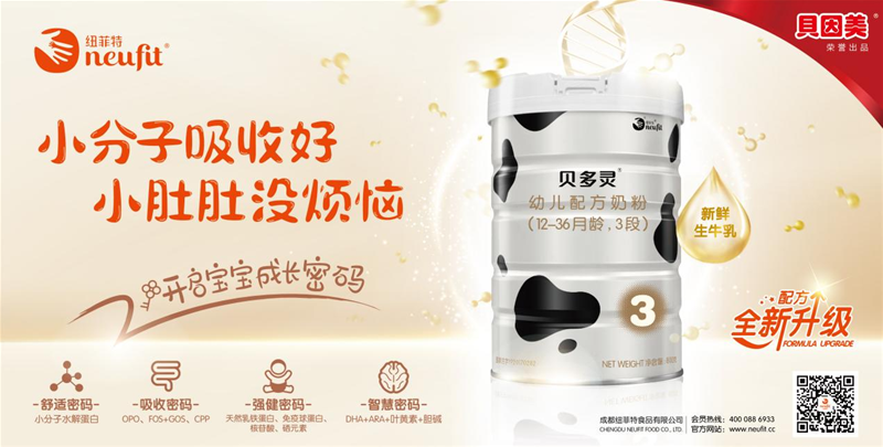 作为高端品质的乳企代表,纽菲特在2019年就拿下了贝因美高端水解配方历经三年,终于在今年9月正式通过婴配注册,并对贝多灵幼儿奶粉配方进行全面焕新升级,以匠心品质为基础,以“为宝宝提供安全、健康、优质的乳制品”为指导方向,牢握中国宝宝奶瓶,回馈中国妈妈的信任与支持。