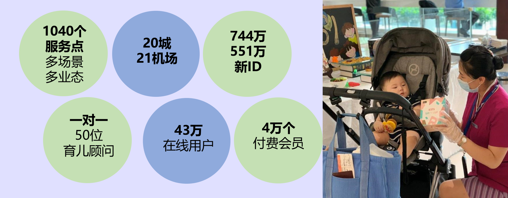 公司成立5年多时间,用令业界惊叹的“倍儿行速度”,在全国创建1040个服务点,覆盖20城21个机场头部资源,实现母婴数字化产品和智能服务多场景、多业态结合,服务744万进店家庭,43万在线用户,获海尔资本同程众创过千万融资,成为中国智能母婴室标杆性运营平台。