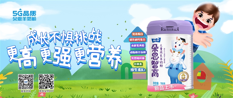 雅泰朵恩,一个充满生命力的羊奶国潮品牌,5GYoungMa的选择,已经被很多家庭熟知。朵恩智高儿童成长羊奶粉的推出,也必将延续高品质“产品力+品牌力”,配套强大的渠道赋能政策,为行业带来真正的心仪产品。