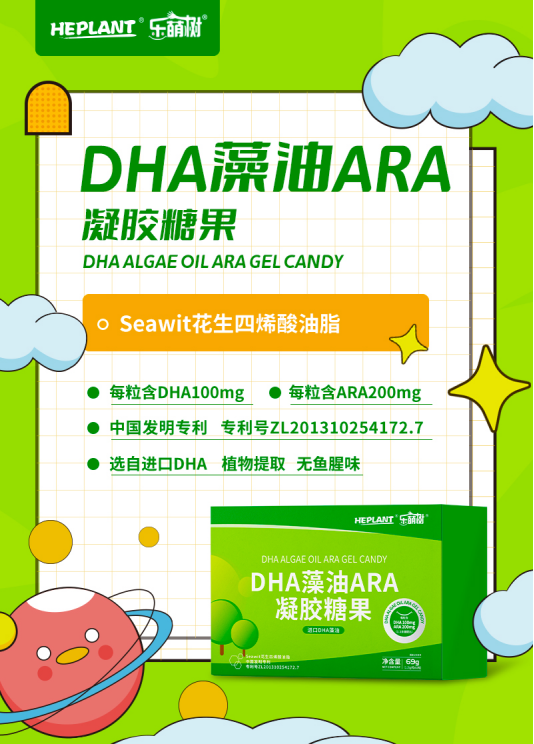 乐萌树DHA藻油ARA凝胶糖果,精选进口DHA,Seawit花生四烯酸油脂,每粒含DHA100mg,每粒含ARA200mg,无鱼腥味,补充大脑所需营养。