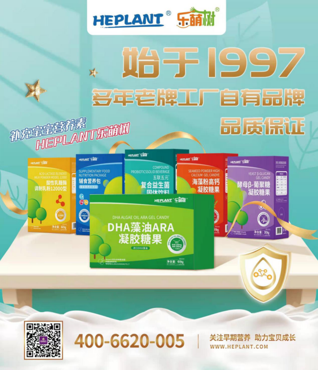 为满足宝宝成长发育对不同营养的需求,乐萌树不断创新研发婴幼儿营养食品,经过不断的调研与实验,乐萌树现推出全新营养组合,包括DHA藻油ARA凝胶糖果、酸性乳糖酶调制乳粉、婴幼儿辅食营养包、酵母β葡聚糖凝胶糖果等系列,全方位守护儿童健康。