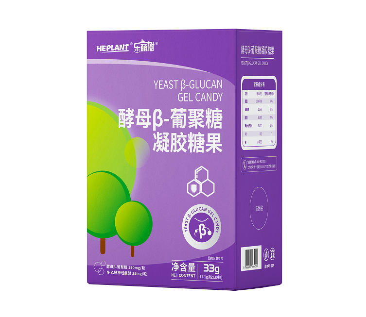 乐萌树酵母β葡聚糖凝胶糖果,酵母β-葡聚糖120mg/粒,N-乙酰神经氨酸31mg/粒。