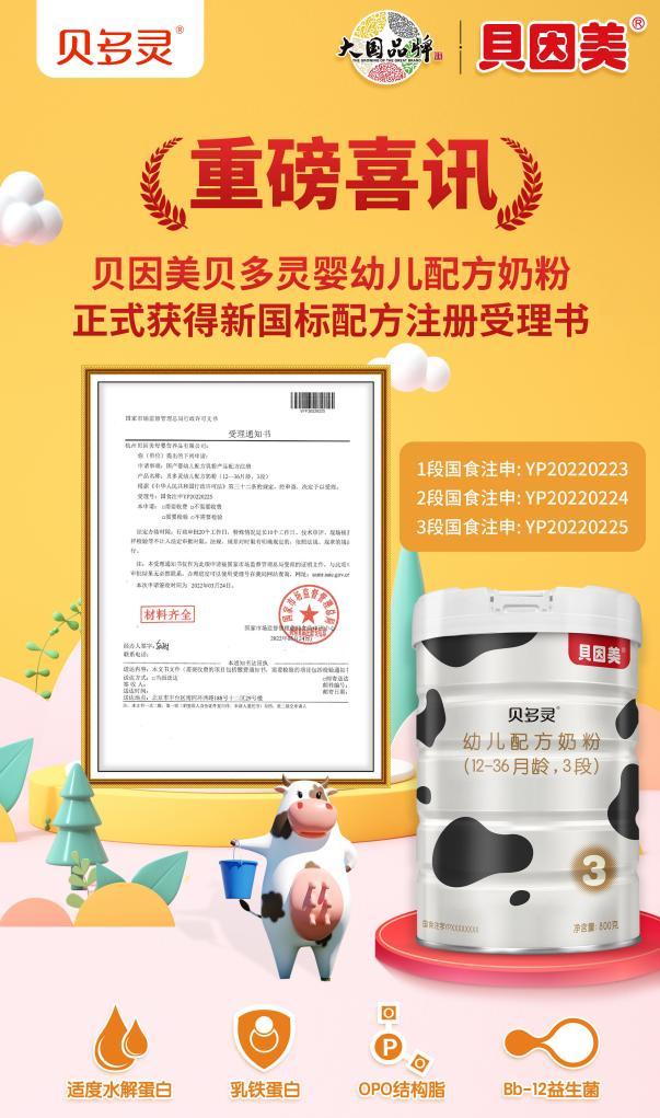 贝因美贝多灵此次成功获得配方注册受理通知书,不仅仅是对品牌实力的认可,更是对贝因美贝多灵严格把关产品品质的见证。
