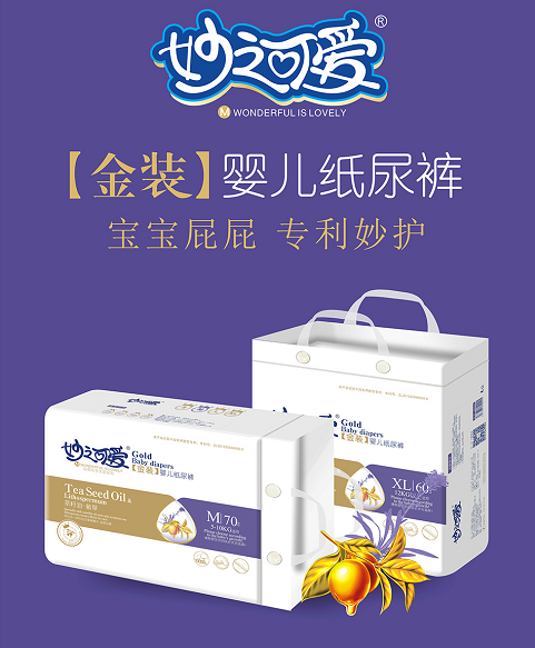 妙之可爱金装纸尿裤添加现代科技萃取的茶籽油及紫草精华,滋润肌肤,帮助宝宝远离“红屁屁”困扰。同时采用创新工艺的一体式打孔设计,打通面层与底层的透气管道,形成立体透气效果,随宝宝运动自由呼吸,小屁屁始终清新舒爽。