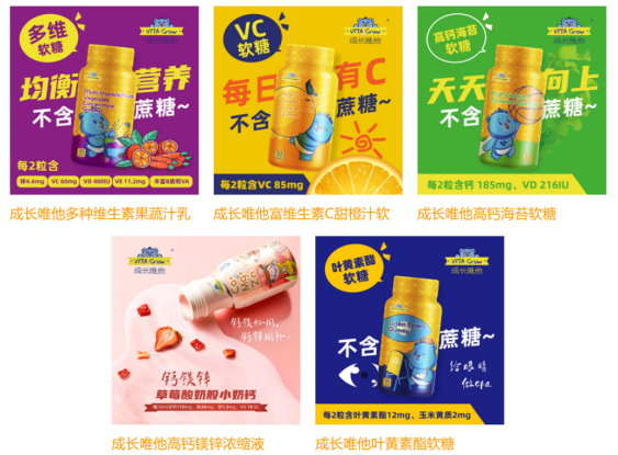 传统的胶囊、片剂保健食品可能带有原料本身的异味,不能带来愉悦感。VITA Grow通过酸甜口味和Q弹口感解决儿童不喜欢吃营养品的问题。