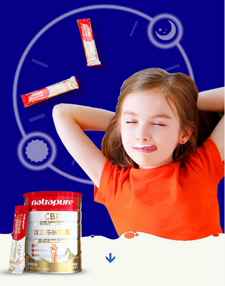 CBP初乳碱性蛋白是百立乐长高高儿童奶粉的核心原料,直接对标国家CBP新资源食品上限标准(≤100mg/日),CBP添加量达到了180mg/100mg。每天冲调2包共50g奶粉,CBP摄入量就可以达到90mg,接近上限标准。