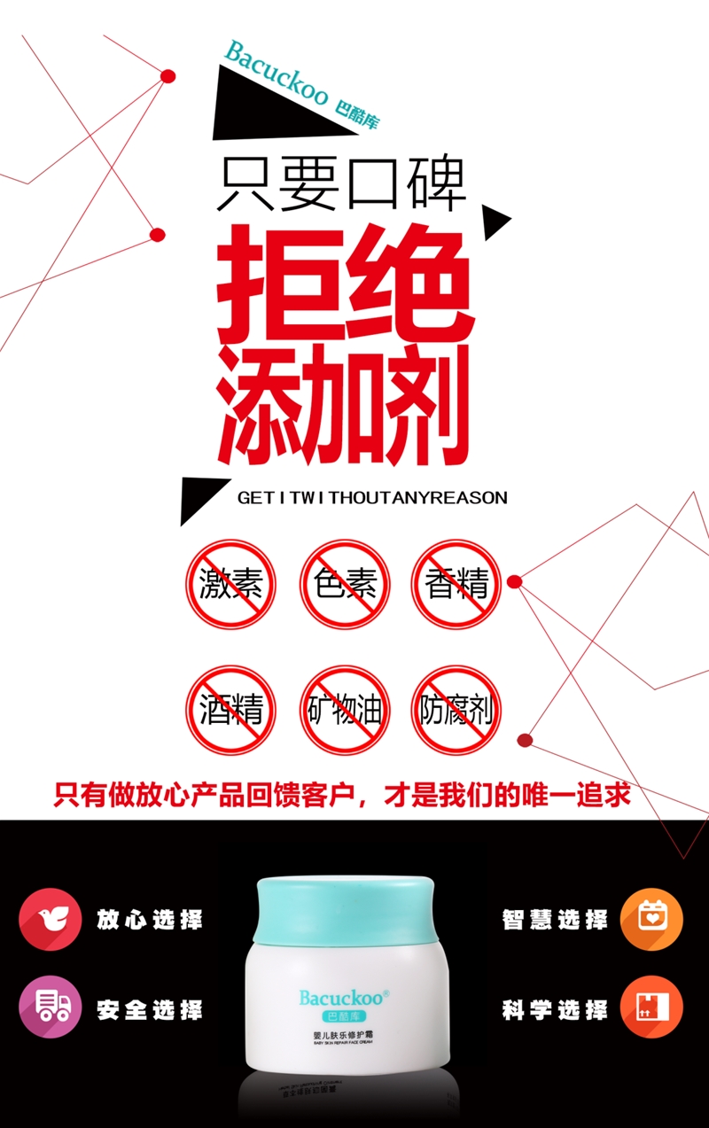 目前,巴酷库旗下有4款单品:婴儿肤乐修护霜、婴儿滋养润肤霜、婴儿滋养身体乳和婴儿滋养洗发沐浴露,其多重植物精粹提取,原料安全,质地温和不刺激,专为宝宝敏感肌肤精心研制,以纯净的力量呵护宝贝。