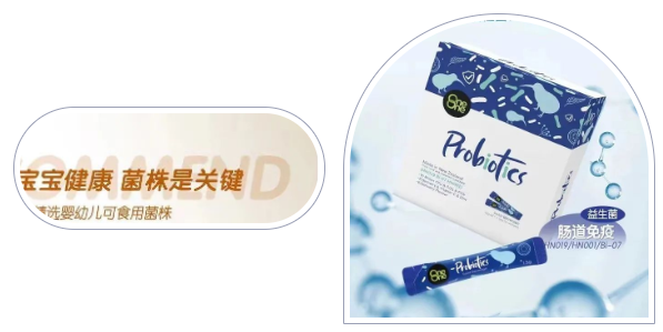 除此之外,产品属于粉剂包装经过低温冷冻干燥,能很好地保护益生菌的活性。同时粉末中的益生菌是可以在室温下长期保存的,在食用时用温开水冲泡或者直接加入牛奶、汤粥等食物中,非常适用于婴幼儿日常益生菌补充。