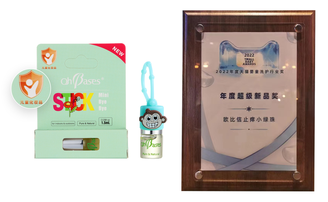 一提起防叮止痒产品,欧比信小不点舒缓滚珠棒(又称“止痒小绿珠”)一定在大家的pick清单上。因其植物配方、优异功效、安心品质以及其可爱萌趣的小猴子造型挂件,迅速成为防叮止痒界的“网红”,火爆全网!单品累计卖出上百万支,还被授予“天猫金婴奖2022年度超级新品”。现全新升级为小金盾系列!