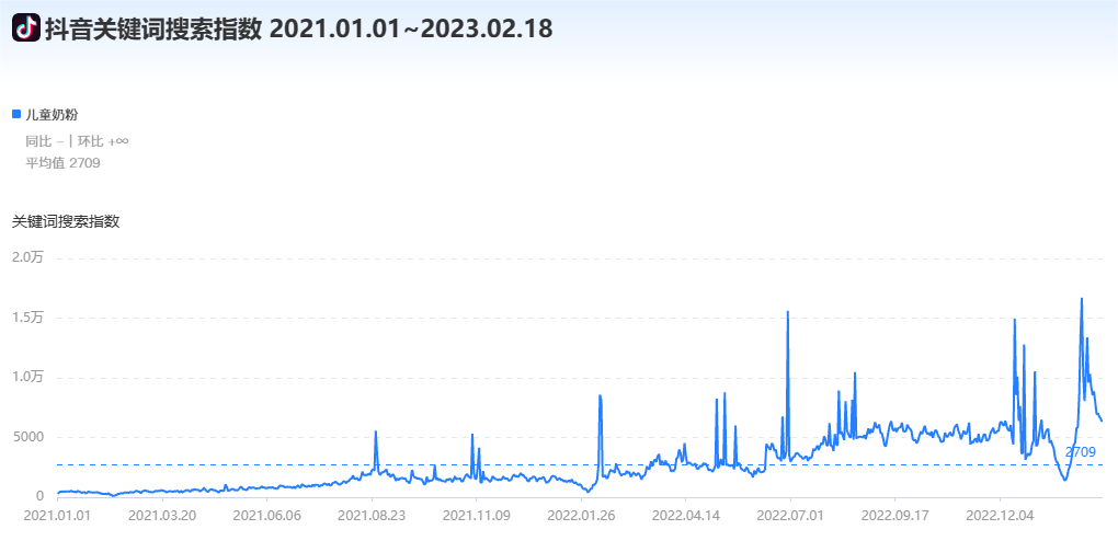 此外,据2021年至今的抖音关键词搜索指数显示,人们对儿童奶粉的关注度整体也有显著提升。