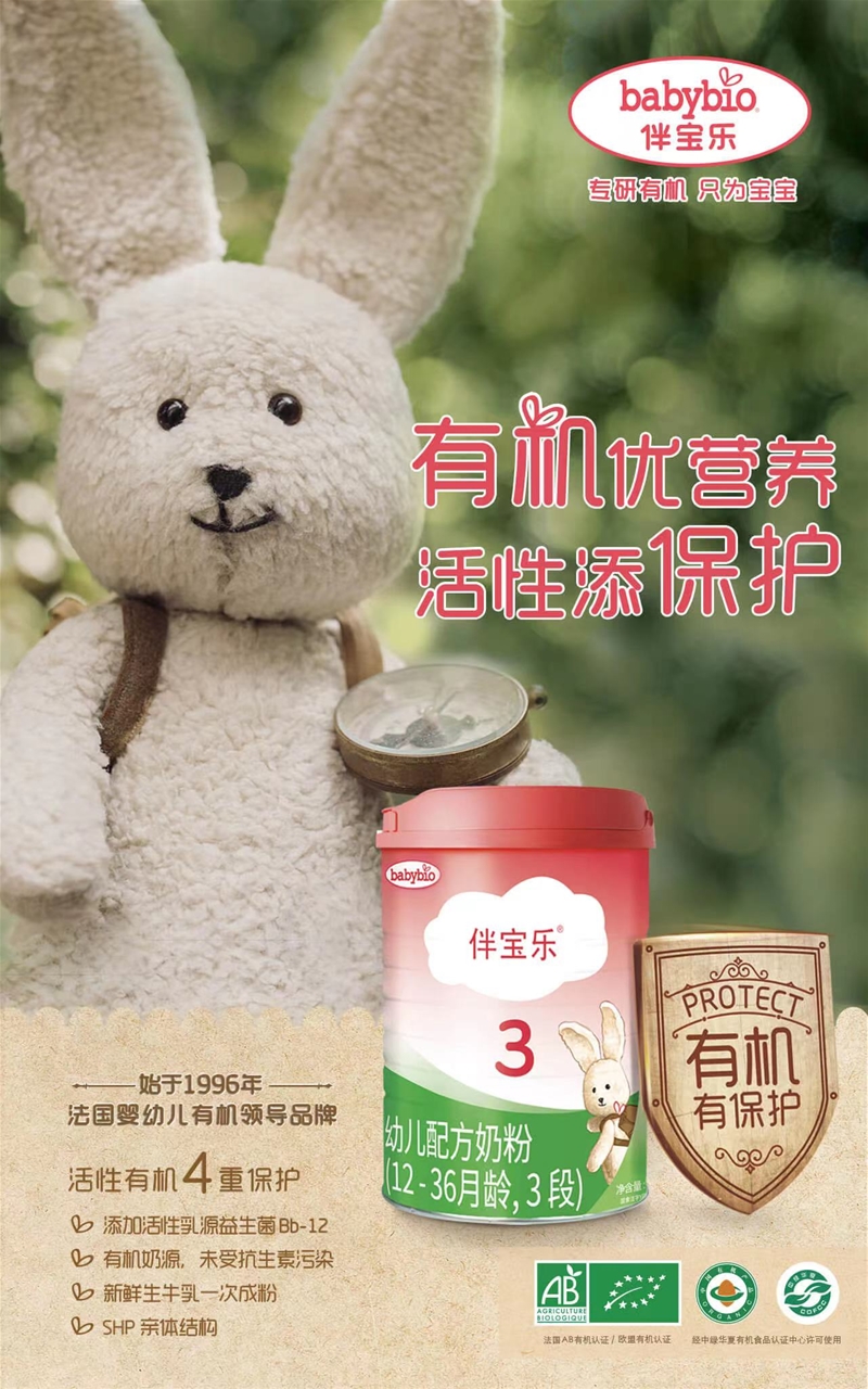 此外,伴宝乐有机奶粉更是获得法国AB有机认证、欧盟有机认证、中国有机认证三重认证,打造了从原料、生产到销售的专属全有机产业链,这也是伴宝乐享誉世界的“金字招牌”。