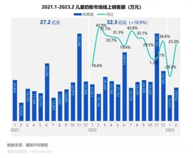 ·魔镜数据显示,2022年儿童奶粉销售额达32.3亿元,同比增长18.9%。